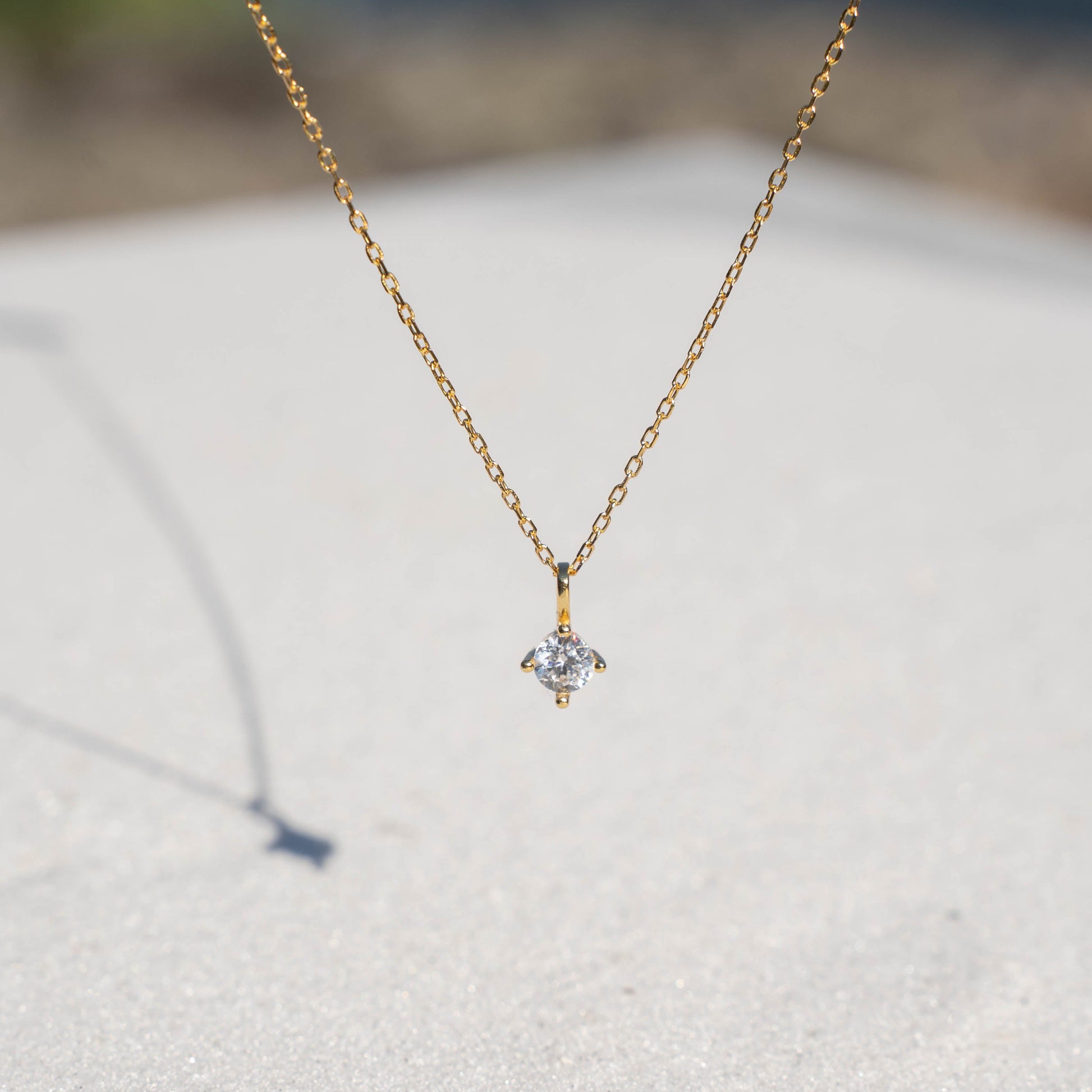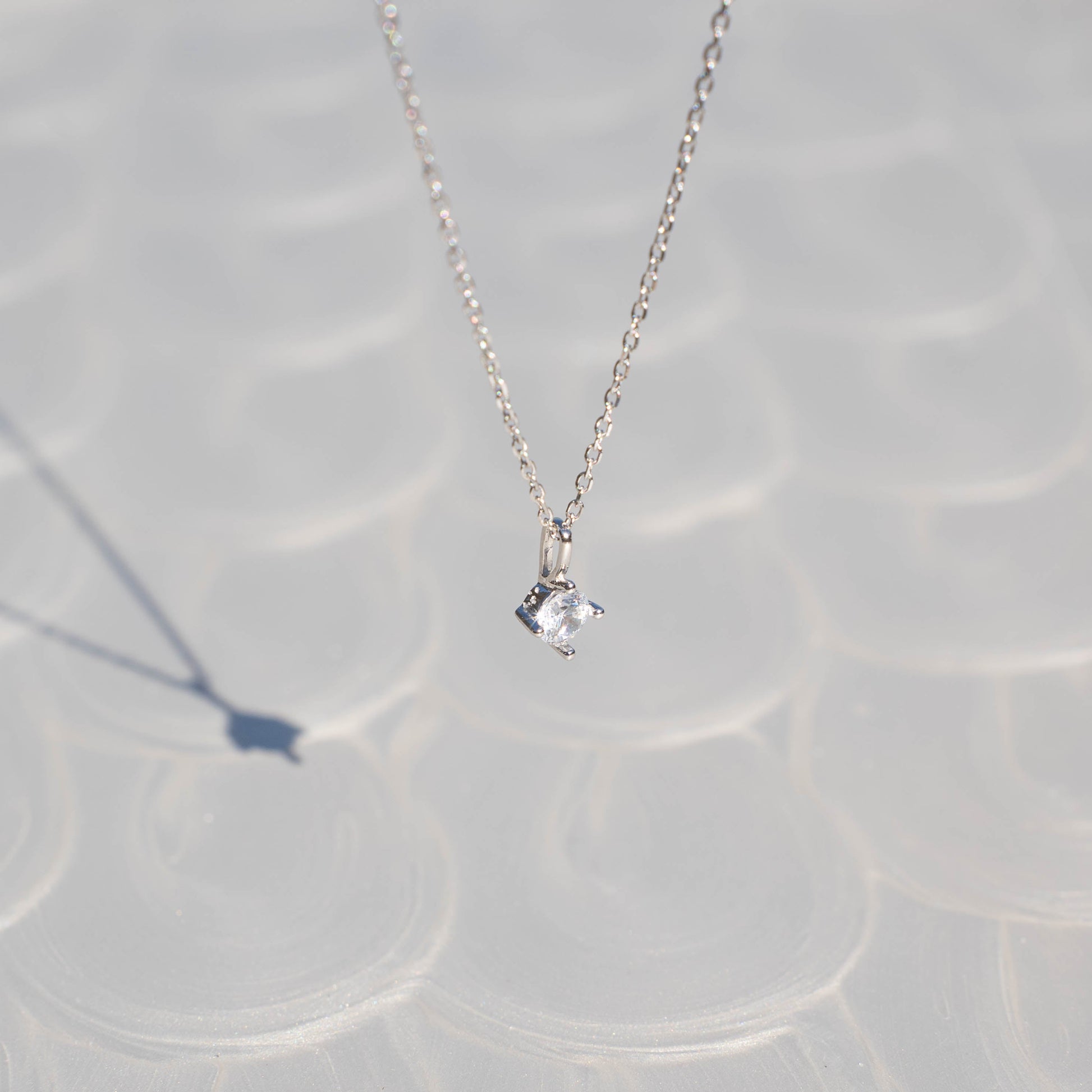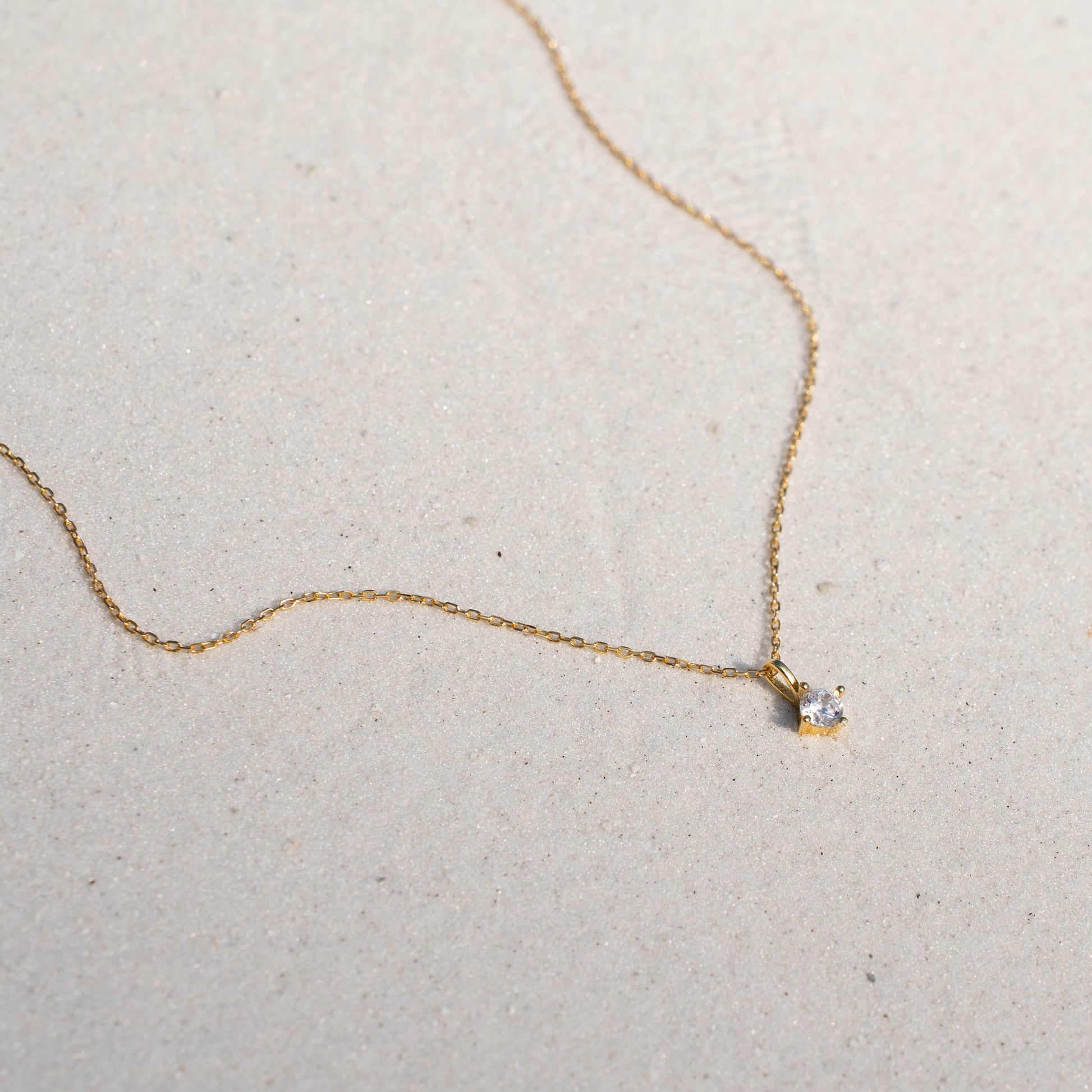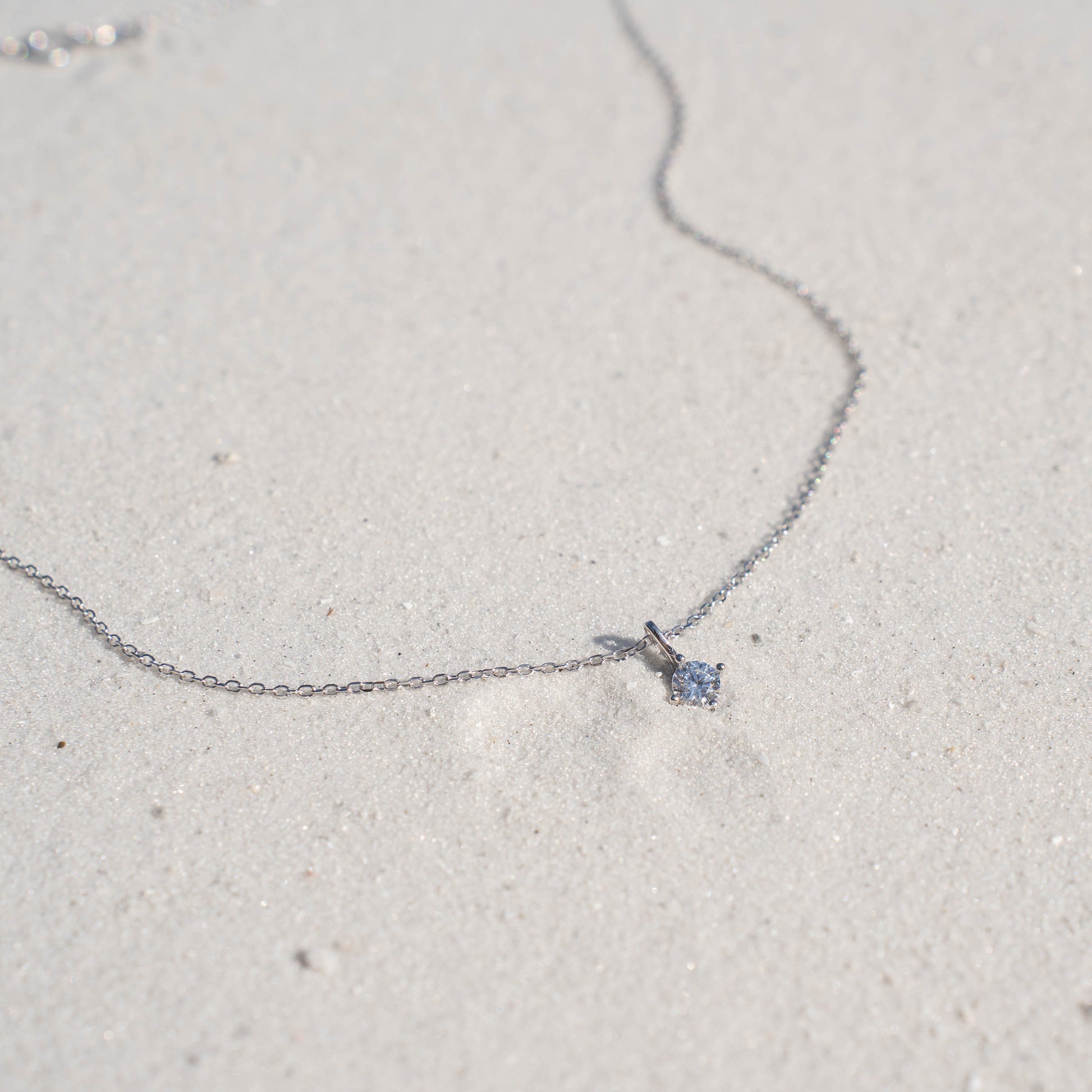 This dainty necklace features a single sparkling CZ gem. A timeless piece designed to be worn close to the heart. Made to stand the test of time (and tide), it’s the perfect piece to wear daily — from salty swims to golden sunsets